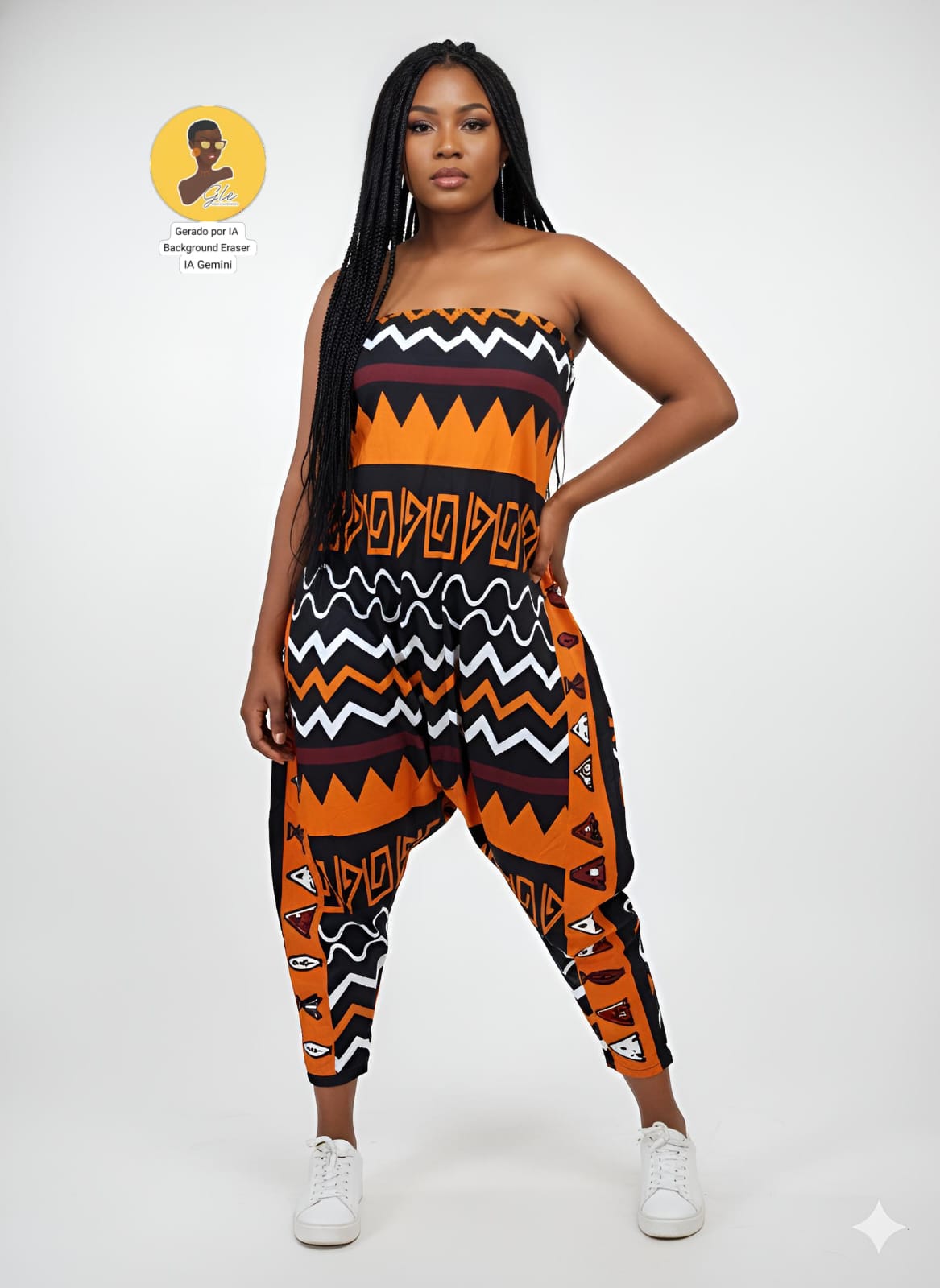 Macacão Saruel Tomara que Caia Afro Composição 96% Poliéster 04% Elastano. Perfeito para dias de verão e meia-estação, leve, confortável e com estampa afro marcante.