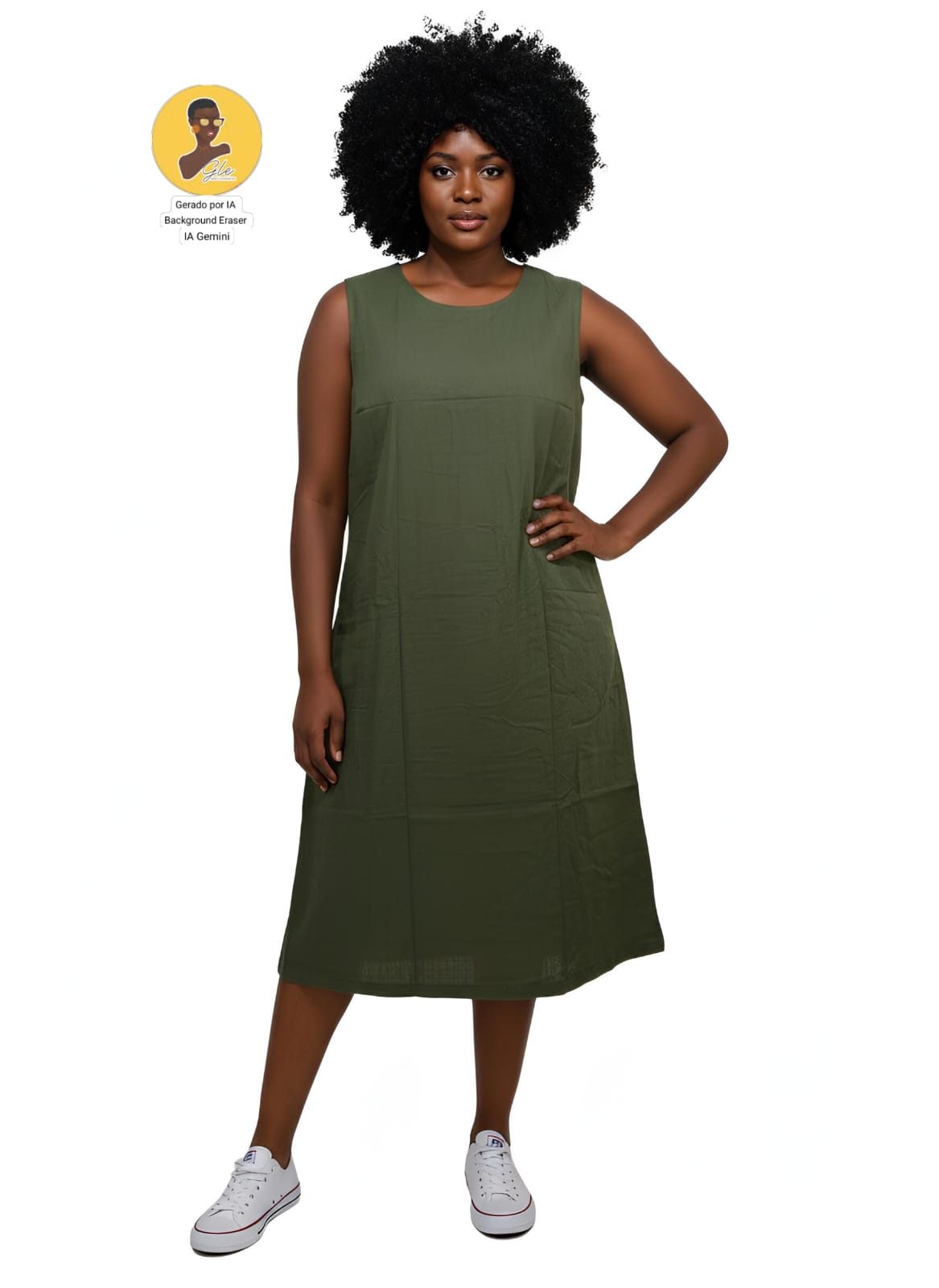 Vestido regata curto em 100% linho, na elegante cor verde oliva que traz sofisticação natural ao visual. A modelagem sem mangas e corte reto oferece leveza e conforto, ideal para os dias quentes com um toque moderno. Perfeito para combinar com tênis branco, resultando em um look casual, despojado e cheio de estilo, valorizando a beleza única de quem o usa.